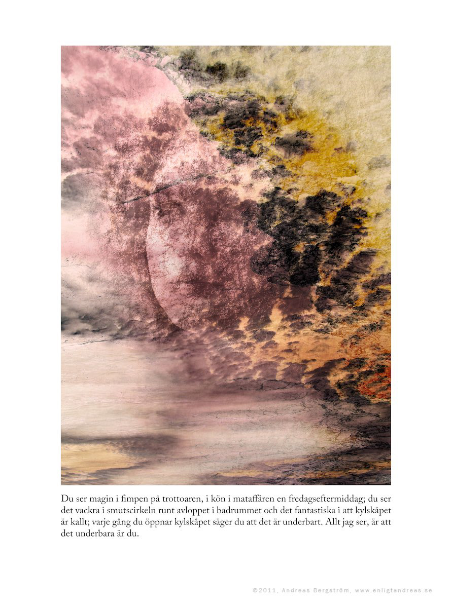 Här visar jag bilder och tankar från 2011, tvådimensionella avtryck som jag hoppas kan få djup och väckas till liv när du upplever dem.